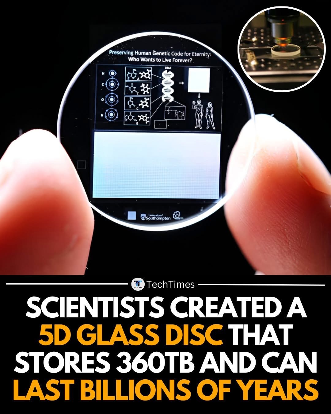 Scientists at the University of Southampton have unveiled a stunning leap in data preservation — a 5D glass disc that can store 360 terabytes of information and remain intact for billions of years.
